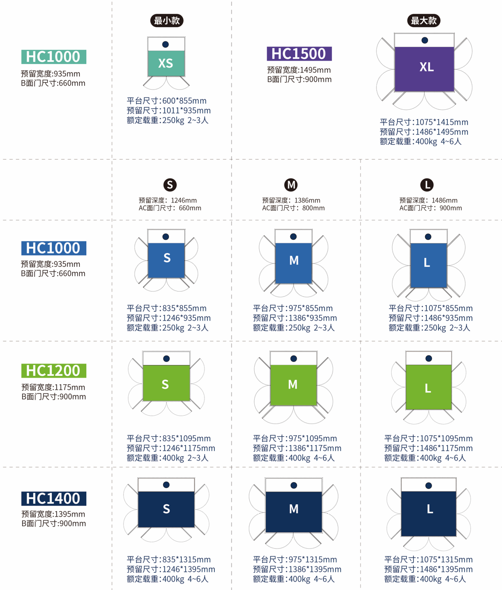 业主根据家庭人口和使用人的情况来选择电梯的尺寸,如果家中有坐轮椅的老人,就要选择能容纳4-6人的相对大尺寸;如果空间非常有限,又是刚需产品,可以选择占地不足1平米的小尺寸。Housty亨世达家用电梯为节省面积,共计有11种定制尺寸可以选择,最小尺寸935mm*1011mm,最大尺寸1495mm*1486mm,可以配备更节约空间的自动双开门,也可以选择更加美观大气的大玻璃平开门。